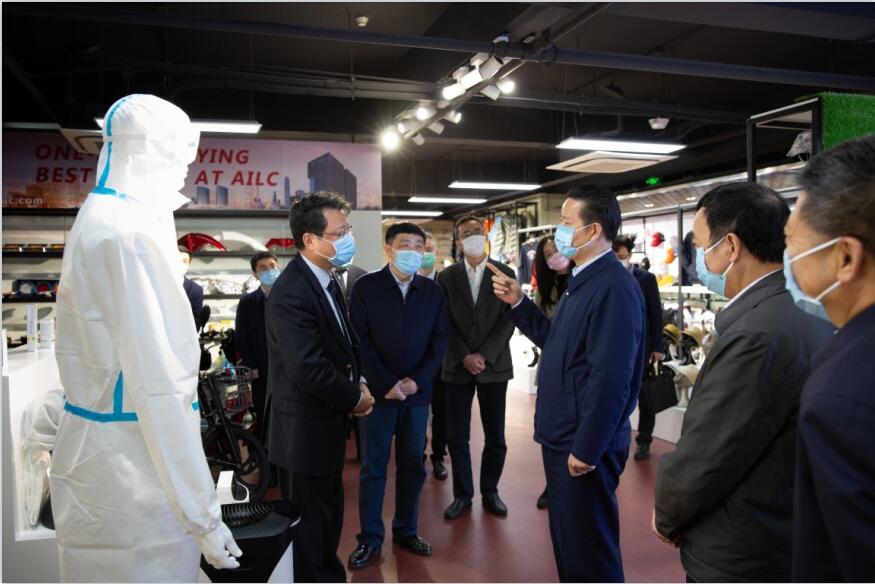 張昌爾走進安徽輕工公司出口展廳,仔細察看產品,詳細詢問近期外貿出口情況和疫情對公司業務的影響,對公司積極擴大防疫物資出口并取得良好成效予以肯定。