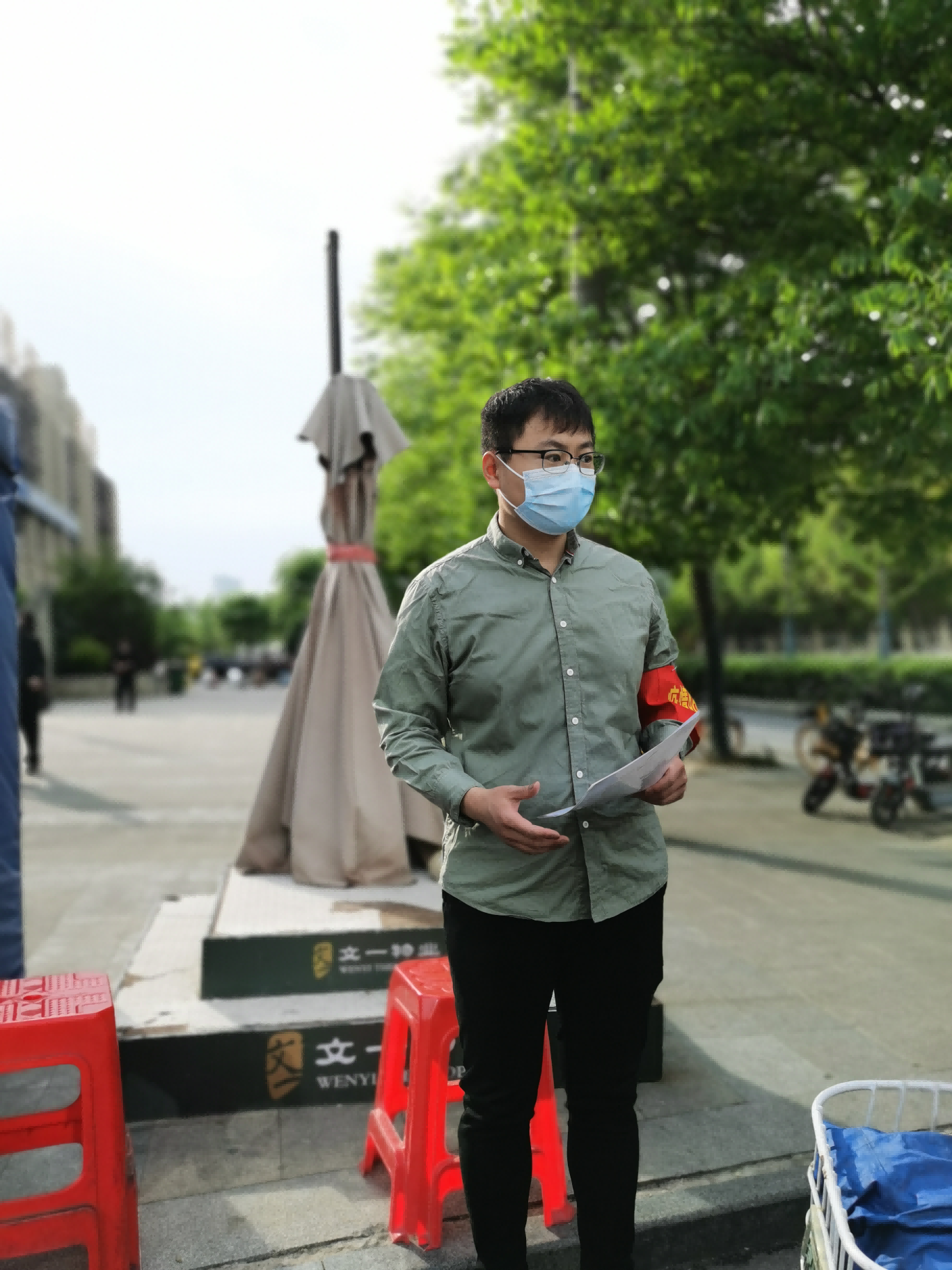 這段時間,周末和工作日下班之后,合肥市文一名門首府小區(qū)門口總會有一個年輕的身影在不停忙碌著,胳膊上的紅色志愿者袖章格外顯眼,他就是安徽輕工國際公司的一名普通共產(chǎn)黨員、進口一部員工——馬龍。